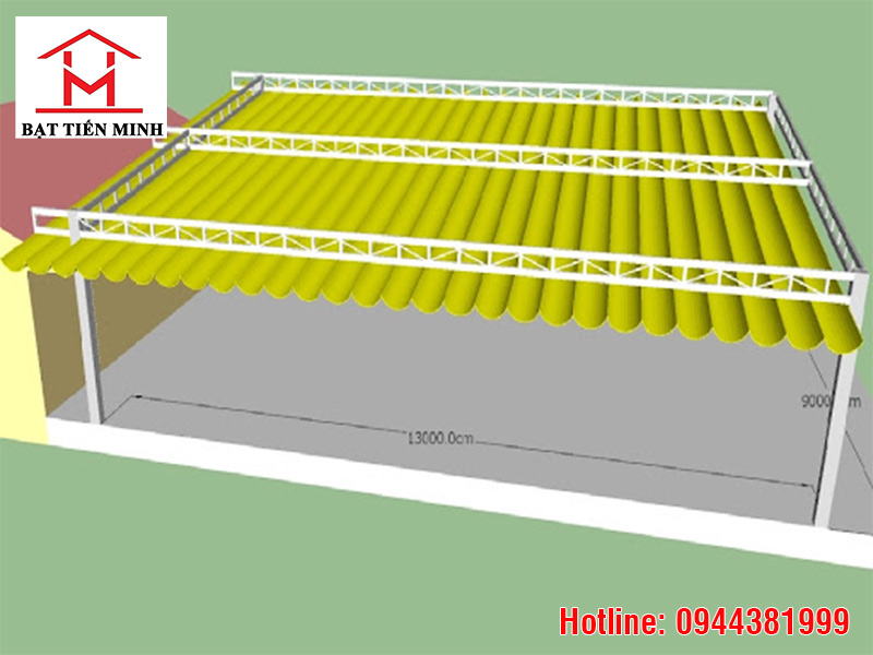 Mái bạt : được làm từ chất liệu sử dụng cho mái che chuyên dụng giúp chống lại tia cực tím tốt. Các múi sóng bạt cách nhau khoảng 0,5 m các thanh sắt được lắp sẵn trong bạt tạo nên các hình lượn sóng. Thiết kế này giúp kéo ra và thu bạt  vào dễ dàng hơn rất nhiều.