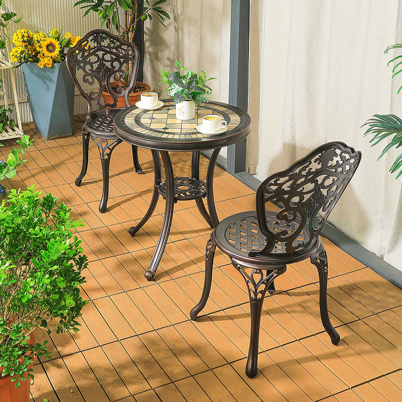 Bàn ghế nhôm đúc hoa lan dễ vệ sinh nhờ bề mặt nhẵn, không bám bẩn. Bạn chỉ cần lau chùi nhẹ nhàng để giữ sản phẩm sạch sẽ. Chất liệu nhôm giúp sản phẩm chống gỉ và chịu được mưa nắng.